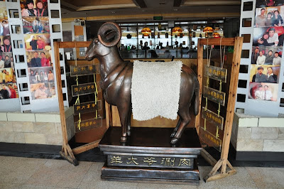We asked the guide for her recommendation on a nice place to have our lunch. She asked her husband to drive us to a nearby area for mutton steamboat for RMB 20. Decor that greeted us at the door