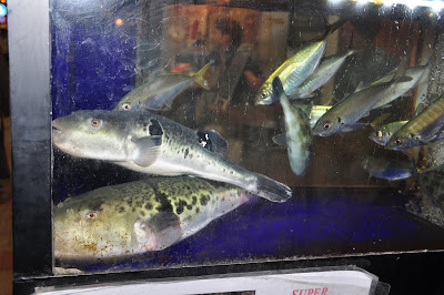 After our dinner at Dotonbori, it was late, and cold, so we made our way back to the hotel. Along the way, we saw a tank of fish, with two huge pufferfish!